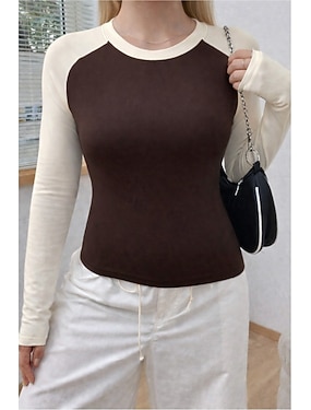 Damen Raglan-T-Shirt T-Shirt Patchwork Farbblock Stilvoll Lässig Langarm Rundhalsausschnitt Normale Oberteile Täglich Sport Ausgehen Kaffee Frühling Herbst