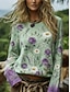 Damen Boho-Hemd T Shirt Druck Blumen Pflanzen Bohemien Vintage Lässig Langarm Rundhalsausschnitt Normale Oberteile Täglich Wochenende Urlaubskleidung Grün Sommer Frühling Herbst