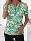 Damen T Shirt Druck Blumen Grafik Pflanzen Vintage Tropisch Hawaiianisch Kurzarm V Ausschnitt Normale Oberteile Täglich Blau Rosa Königsblau Grün Sommer Frühling