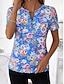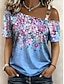 Damen T Shirt T-Shirt Druck Blumen Grafik Pflanzen Mode Stilvoll Klassisch Kurzarm Asymmetrischer Ausschnitt Normale Oberteile Täglich Ausgehen Wochenende Blau Sommer Frühling