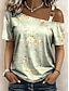 Damen T Shirt T-Shirt Druck Asymmetrisch Blumen Grafik Pflanzen Stilvoll Klassisch Lässig Kurzarm Schulterfrei Asymmetrischer Ausschnitt Normale Oberteile Täglich Ausgehen Wochenende Grün Sommer