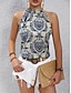 Damen T Shirt Tank Top Ärmelloses Shirt T-Shirt Einfarbig Grafik Pflanzen Elegant Bohemien Mode Ärmellos Hoher Ausschnitt Normale Oberteile Täglich Ausgehen Wochenende Blau Sommer Frühling