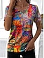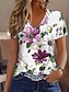 Damen T Shirt Druck Blumen Grafik Pflanzen Vintage Stilvoll Lässig Kurzarm V Ausschnitt Normale Oberteile Lässig Täglich Wochenende Blau Schwarz Dunkelgrün Purpur Orange Sommer Frühling