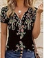 Damen Hemd Bestickt Grafik Pflanzen Elegant Vintage Mode Kurzarm V Ausschnitt Normale Oberteile Täglich Ausgehen Wochenende Rote Marineblau Leicht Braun Sommer Frühling