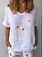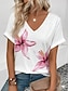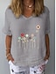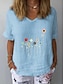 Damen Baumwoll Mischung T Shirt Druck Grafik Pflanzen Mode Stilvoll Klassisch Kurzarm V Ausschnitt Normale Oberteile Täglich Ausgehen Wochenende Weiß Gelb Tintenblau Grau Leicht Blau Sommer Frühling