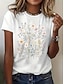 Damen T Shirt Druck Blumen Grafik Pflanzen Stilvoll Klassisch Lässig Kurzarm Rundhalsausschnitt Normale Oberteile Täglich Weiß Sommer Frühling