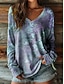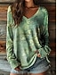 Damen Boho T-Shirt Langarm Floral Grafik Pflanzen Vintage Stylisch Lässig Langarm V-Ausschnitt Reguläre Oberteile Täglicher Wochenenddruck Salbeigrün Pink Rot Lila Grün Frühling Herbst Vorherherbst