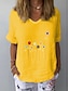 Damen T Shirt Druck Blumen Grafik Pflanzen Vintage Stilvoll Klassisch Kurzarm V Ausschnitt Normale Oberteile Täglich Schwarz Gelb Sommer Frühling