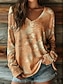 Damen T Shirt Druck Blumen Grafik Pflanzen Vintage Klassisch Lässig Langarm V Ausschnitt Normale Oberteile Täglich Rosa Purpur Orange Grün Frühling Herbst