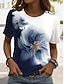 Damen T Shirt Druck Blumen Grafik Pflanzen Stilvoll Klassisch Lässig Kurzarm Rundhalsausschnitt Normale Oberteile Täglich Blau Sommer Frühling