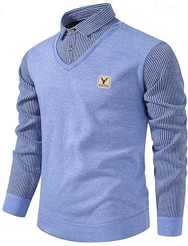 Herren Pullover Strickpullover Herren Pullover Gerippt Stricken Standard Strick gefälschtes zweiteiliges Streifen Hemdkragen Modisch Brautkleider schlicht Freizeitskleidung Verabredung Bekleidung