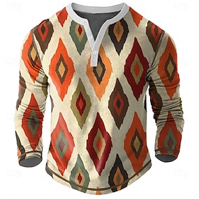 Herren Geometrisch Henley Hemd T-Shirt Langarm Vintage Mode Designer Outdoor Lässig Täglich Frühling & Herbst Ganzjahres Blau Kaki Henley Henley T-Shirt