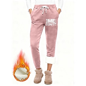 Damen Jogginghose Fleecehose Stoffhosen Mode Basic Lässig Volle Länge Hohe Taille Buchstabe Kordelzug Tasche Druck Thermowarm Winddicht Bequem Dehnbar Urlaub Straße Lässig Schwarz Rosa Dunkelpink Blau
