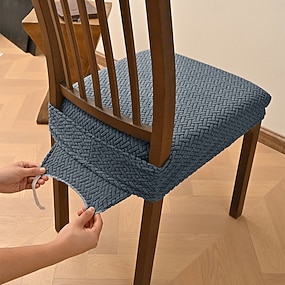 Sitzbezüge für Esszimmer, elastischer Jacquard-Streifen-Karo-Design, doppelter elastischer Hockerbezug mit Schnalle und Zunge, rutschfestes Stuhlkissenbezug-Set für die Bankettdekoration zu Hause, im