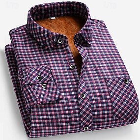 Herren Freizeithemd Flanellhemd Kariertes Hemd Knopfhemd Rote Blau Langarm Karo Revers Urlaub Alltagstauglich Button-Down Bekleidung Mode Lässig Bequem