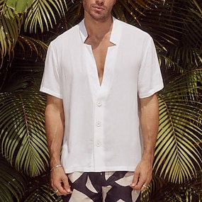 Herren Hemd Sommerhemd Freizeithemd Strandhemd Knopfhemd Weiß Kurzarm Einfach V Ausschnitt Urlaub Hawaiianisch Bekleidung Polyester Mode Lässig Bequem
