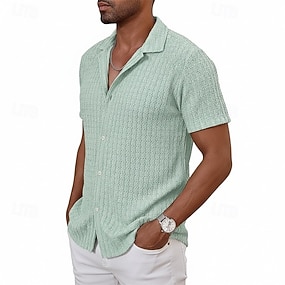 Herren Hemd Textur Freizeithemd Knopfhemd Weiß Hellgrün Kaki Aprikose Leicht Blau Kurzarm Einfarbig Hemdkragen Lässig Täglich Jacquard Bekleidung Elegant Mode Lässig