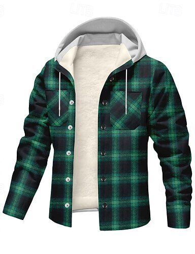 Herren Fleecejacke Freizeitjacke Kapuzenjacke Urlaub Täglich Thermowarm Tasche Fleece Herbst Winter Karomuster Mode Streetwear Mit Kapuze Regulär Schwarz Grün Dunkelblau Jacken