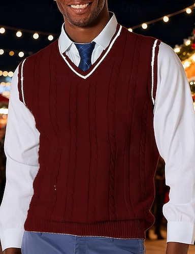 Herren Weihnachtspullover Pullunder Kleid Pullover Pullover Weste Gerippt Zopfmuster Stricken Normale Oberteile Gestrickt Einfach V Ausschnitt Mode Lässig Urlaub Alltagskleidung Bekleidung Herbst
