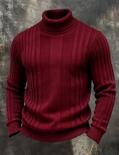 Herren Pullover Strickpullover Gerippt Stricken Normale Oberteile Gestrickt Einfarbig Rollkragen Mode Streetwear Lässig Alltagskleidung Bekleidung Herbst Herbst Winter Schwarz Rot M L XL