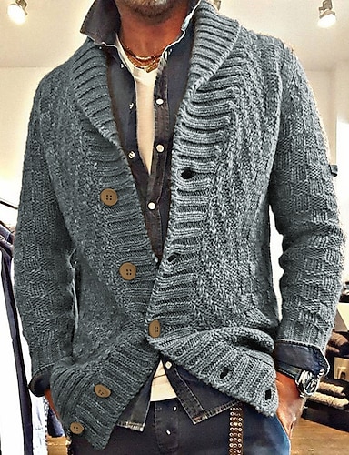Herren Pullover Strickjacke Herbstpullover Stricken Cropped Strick Glatt Schalrevers Modisch Moderne zeitgenössische Weihnachten Casual Bekleidung Herbst Winter Weinrot Schwarz S M L