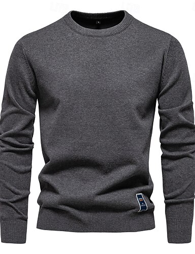 Herrenpullover aus einfarbiger Baumwolle mit Rundhalsausschnitt, lässiger, klassischer Pullover für Männer