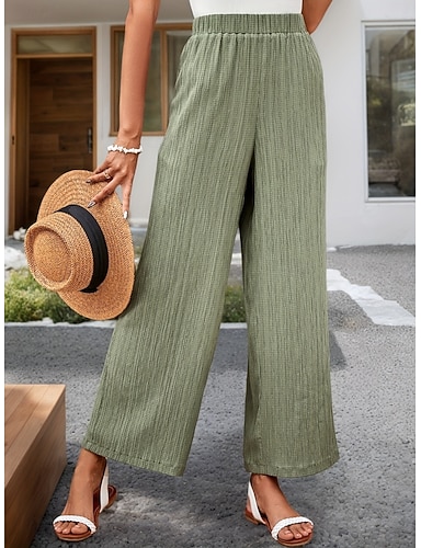 Damen Weite Hosenbeine Chinos Urlaub Mode Streetwear Volle Länge Hohe Taille Einfach Elastischer Bund Bequem Weich Dehnbar Täglich Outdoor Straße Grün Sommer Frühling Herbst Lässiger Schnitt
