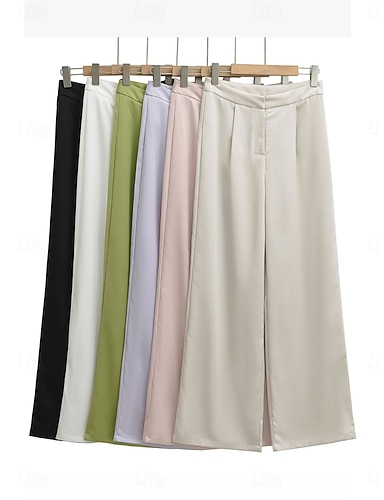 Damen Weites Bein Chinos Gerade Elegant Urlaub Vintage Volle Länge Mittlere Taillenlinie Einfarbig Patchwork Tasche Bequem Unelastisch Täglich Heim Outdoor Hellrosa Beige Schwarz Weiß Sommer Frühling