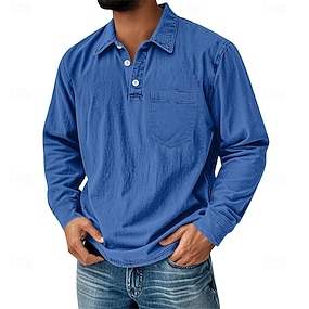 Herren Waffel-Poloshirts Poloshirts Lässig Straße Revers Langarm Basic Modern Einfach Tasche Knöpfe Frühling Herbst Normale Passform Blau Grau Schwarz Weiß Hellgrün Wein Waffel-Poloshirts