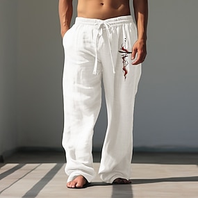 Herren Hose Baggy-Hosen Freizeithose Elastischer Kordelzug in der Taille Leinenähnliche Hose mit Taschen Geometrisch Abstrakte Kunst Volle Länge Outdoor Urlaub Retro Vintage Schwarz Wein Unelastisch