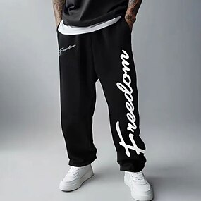 Herren Text Jogginghose Kordelzug Elastischer Bund Sportlich Lässig Outdoor Straße Alltagskleidung Tasche Gerade Hosen Frühling Herbst Winter 3D-Druck Schwarz