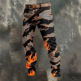 Herren Optische Täuschung Flamme Hose Anzughose Mittlere Taille Lässig Outdoor Urlaub Slim Fit Hose mit Taschen Frühling Herbst 3D-Druck Schwarz / Blau Schwarz / Grün Schwarz / Rot