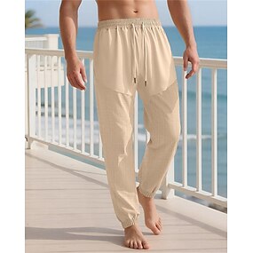 Herren Leinenhosen Hose Sommerhose Strandhose Freizeithose Tasche Kordelzug Einfach Komfort Atmungsaktiv Urlaub Täglich Ferien Einfach Lässig Dunkelbraun Meerblau
