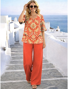 Damen Hosen-Sets Halbarm Rundhals Grafik Geometrisch Elegant Urlaub Lässig Täglich Urlaub Blau Purpur Orange Sommer Normale Passform