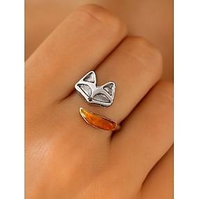 Verstellbarer Damenring aus Legierung mit Fuchs-Design – süßes offenes Tierband mit bernsteinfarbenem Akzent für Mädchen und Frauen, ideal für den Alltag, als Geschenk und für lässige Outfits