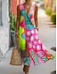 Maxikleid für Damen, langes Freizeitkleid, Sommerkleid, bedrucktes Kleid, modisch, Streetwear, Outdoor, Urlaub, Alltag, bedruckt, kurzärmlig, V-Ausschnitt, normale Passform, schwarz, weiß, rosa, Sommer, Frühling, S, M, L, XL, XXL