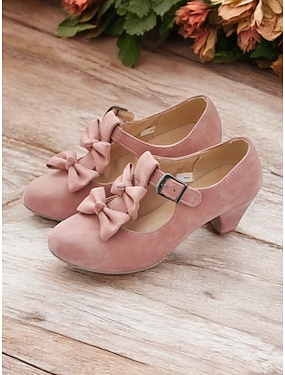 Rosafarbene Mary-Jane-Pumps für Damen mit doppeltem Schnallenriemen und Schleifendetail – süße Schuhe im Retro-Stil mit Blockabsatz für legere und elegante Anlässe