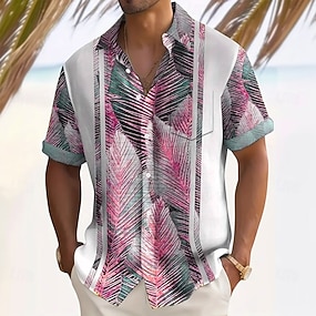 Herren Hemd Leinenhemd Sommerhemd Strandbekleidung Sommer Hawaiihemd Knopfhemd Kokospalme Täglich Strand Blau Weiß Rosa Beige Kurzarm Umlegekragen Frühling & Sommer Bekleidung