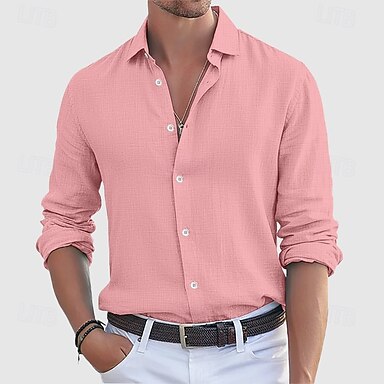 Herren Baumwoll-Leinen-Hemd Einfach Urlaub Schwarz Weiß Rosa Himmelblau Langarm Umlegekragen Bekleidung