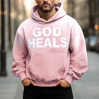 Herren Farbverlauf Buchstabe Kapuzensweatshirt Mode Täglich Lässig Langarm Mit Kapuze Urlaub Party Streetwear Festival Rosa Blau Orange Grün Dunkelgray Tasche Drucken Frühling Herbst Designer S M L