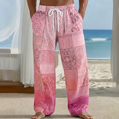 Herren Grafik Hose Mittlere Taille Urlaub Lässig Sommer Frühling 3D-Druck Schwarz Rosa Blau