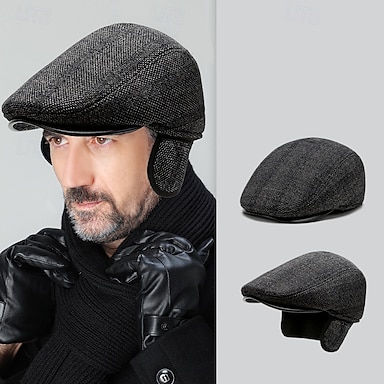 Herren Ohrenklappenmütze Schiebermütze Ascot-Hut Zeitungsjungenmütze Schwarz Braun Wollig Mode Lässig Straße Täglich Karo Verstellbar Sonnenschutz Atmungsaktiv