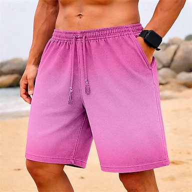 Herren Shorts Sommershorts Freizeitshorts Acid Wash Shorts Tasche Elastischer Bund Einheitliche Farbe Gewaschen Komfort Atmungsaktiv Knielang Lässig Outdoor Strand Urlaub Mode Rosa Purpur Dehnbar