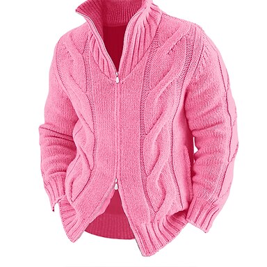 Herren Pullover Strickjacke Zopfmuster Stricken Normale Oberteile Knopf hoch Einfach Schalkragen Urlaub Mode Lässig Alltagskleidung Bekleidung Frühling & Herbst Rosa Rosa S M L