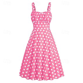 Retro Vintage 1950er Rockabilly Knielang Swing-Kleid Ausgestelltes Kleid Ärmellos Tupfen Kostüm Damen Karneval Maskerade Party / Abend Alltagskleidung Lässig Erwachsene Kleid Frühling & Sommer