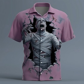Herren Zombies Mumie Rissige Wand Hemd Knopfhemd Kurzarm Dunkler Gothic-Stil Ferien Streetwear Sommer Frühling Umlegekragen 3D-Druck Hemden mit Kragen Hellgrün Rosa Purpur Grün Khaki