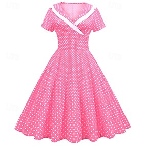 Pünktchen 1950er Jahre Grease Outfits Cocktailkleid Knie-Längen Kleid Weihnachtskleid Rockabilly Pünktchen V-Ausschnitt Schickes Kleid Damen Weihnachts Halloween Karneval Heimkehr Abschlussball