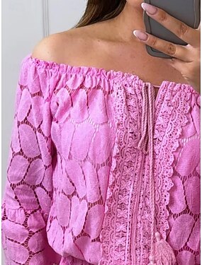 Damen Minikleid Weißes Kleid Spitzenkleid Freizeitkleid Mode Modern Outdoor Urlaub Ausgehen Normale Passform Einfach Langarm Schulterfrei Rosa Sommer Frühling
