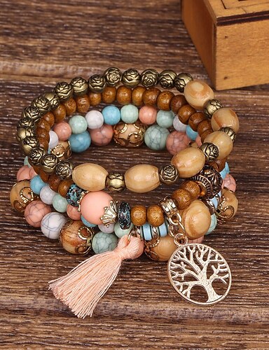 Damen Perlenarmband Vintage Armband Layer-Look Mode Baum des Lebens Blume Elegant Modisch Personalisiert Quaste Böhmische Aleación Armband Schmuck Schwarz / Weiß / Rosa Für Geschenk Festtage