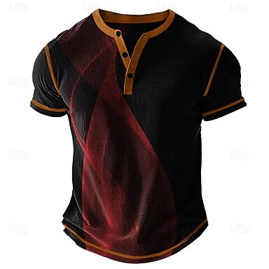 Herren Grafik Abstrakt Henley Hemd Waffel-T-Shirt Kurzarm Täglich Retro Vintage Klassisch Sport im Freien Lässig Ferien Frühling & Sommer Ganzjahres Blau Gelb Grün Rot Grau Henley Henley T-Shirt